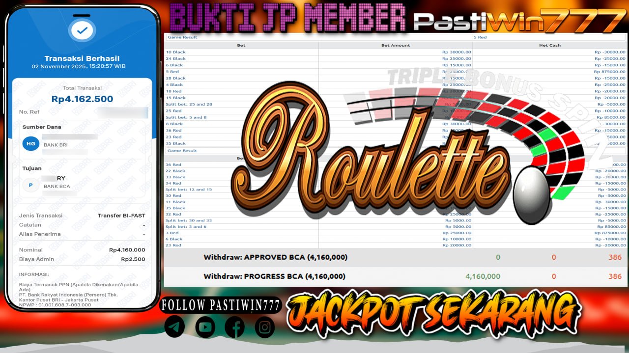 BUKTI JP MEMBER PASTIWIN777 BERMAIN ROULETTE – LIVE GAME PRAGMATIC PLAY