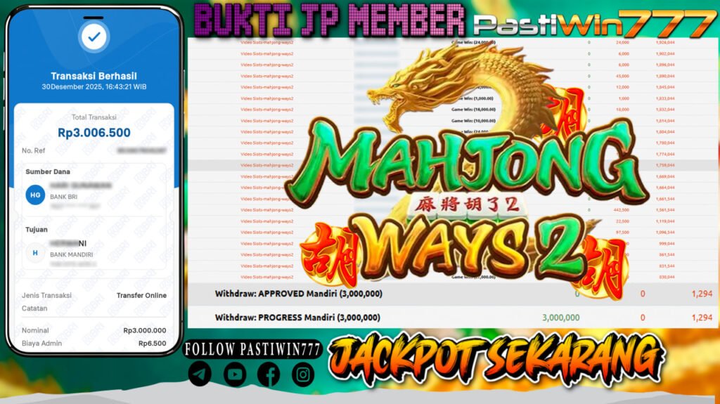 • BUKTI JP MEMBER PASTIWIN777 BERMAIN GAME MAHJONG WAYS 2 -PG SOFT