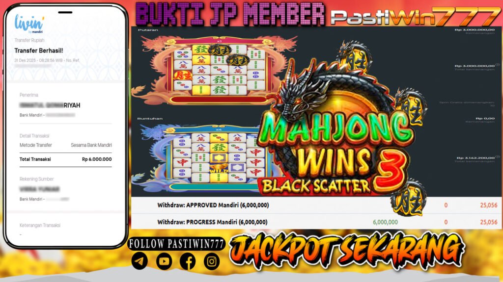 BUKTI JP MEMBER PASTIWIN777 BERMAIN MAHJONG WINS 3 BLACK SCATTER-PRAGMATIC PLAY